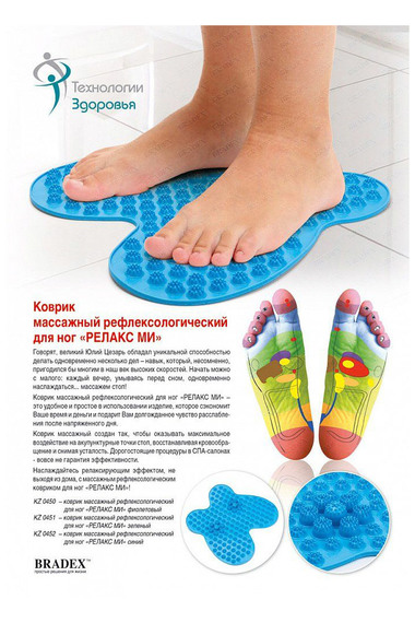 Положите коврик перед кроватью или перед умывальником. Теперь, вставая утром с кровати или в то время, когда Вы умываетесь и чистите зубы, Вы можете получать акупунктурный массаж стоп, который подарит Вам бодрость на весь день. Рекомендации по уходу: • При необходимости промойте коврик под теплой проточной водой с мылом